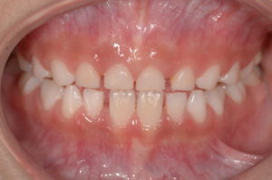 上の前歯が生え変わる前、やや反対咬合でした。