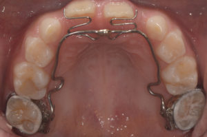 上の歯にリンガルアーチという装着を入れて経過を見ました。