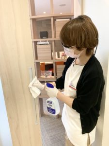 このようにスタッフがこまめに消毒をしています!