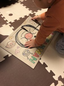 息子はまだ絵をうまく書けないので、私が書いた絵に一緒に色をぬってみました。