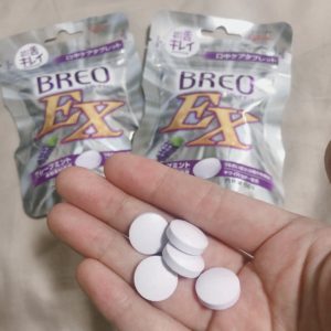 という口中ケアタブレットを時々食べて舌ケアしています。味は大手お菓子メーカーのグリコさんというだけあって美味しいですね…。私は好きなグレープ味。マスカット味もありますヨ♪